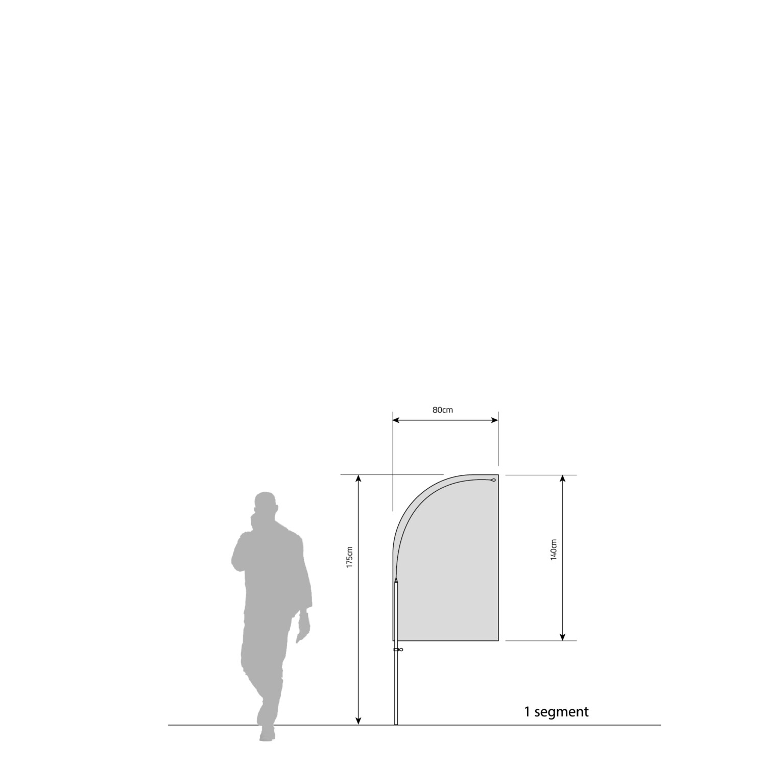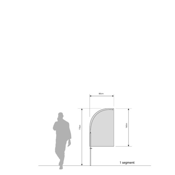 This beachflag mast frame is constructed with durable materials such as anodized aluminum and glass fiber, offering stability and adaptability with a tensioning system for the flag, ensuring a secure and tear-resistant display. The modular design allows for customization of the mast height by adding additional segments.