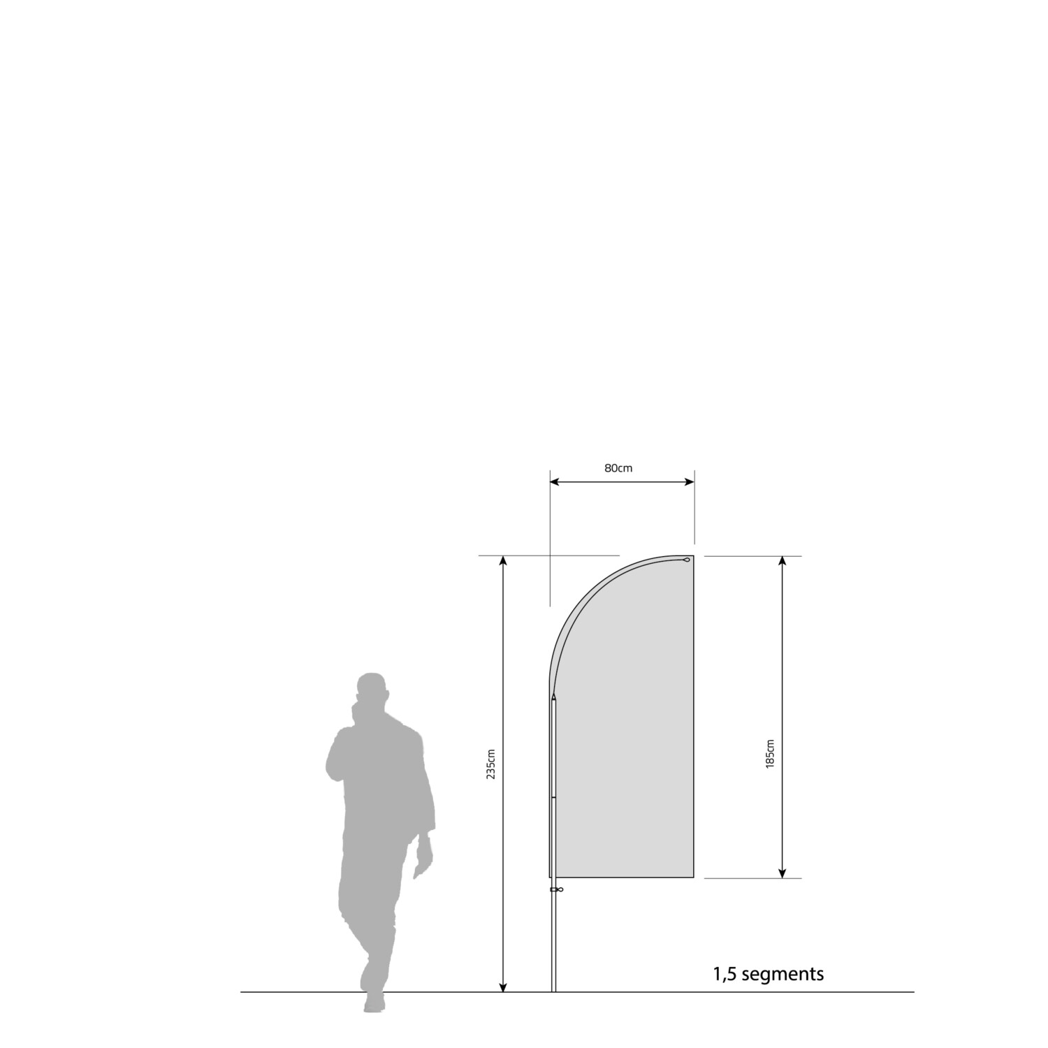 This beachflag mast frame is constructed with durable materials such as anodized aluminum and glass fiber, offering stability and adaptability with a tensioning system for the flag, ensuring a secure and tear-resistant display. The modular design allows for customization of the mast height by adding additional segments.
