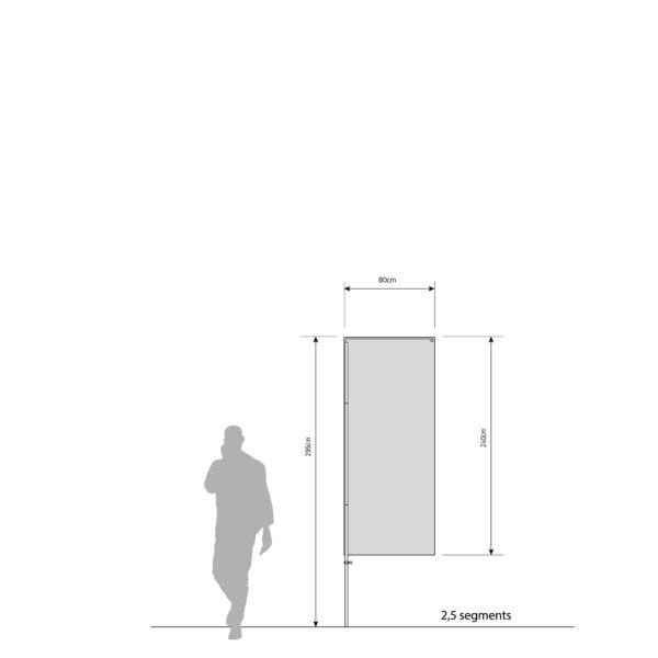 This beachflag mast frame is constructed with durable materials such as anodized aluminum and glass fiber, offering stability and adaptability with a tensioning system for the flag, ensuring a secure and tear-resistant display. The modular design allows for customization of the mast height by adding additional segments.