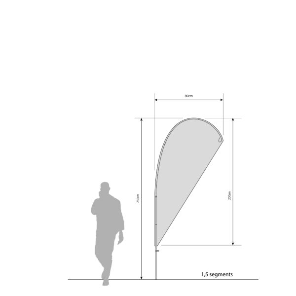 This beachflag mast frame is constructed with durable materials such as anodized aluminum and glass fiber, offering stability and adaptability with a tensioning system for the flag, ensuring a secure and tear-resistant display. The modular design allows for customization of the mast height by adding additional segments.