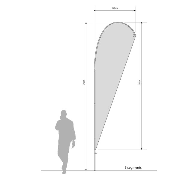 This beachflag mast frame is constructed with durable materials such as anodized aluminum and glass fiber, offering stability and adaptability with a tensioning system for the flag, ensuring a secure and tear-resistant display. The modular design allows for customization of the mast height by adding additional segments.