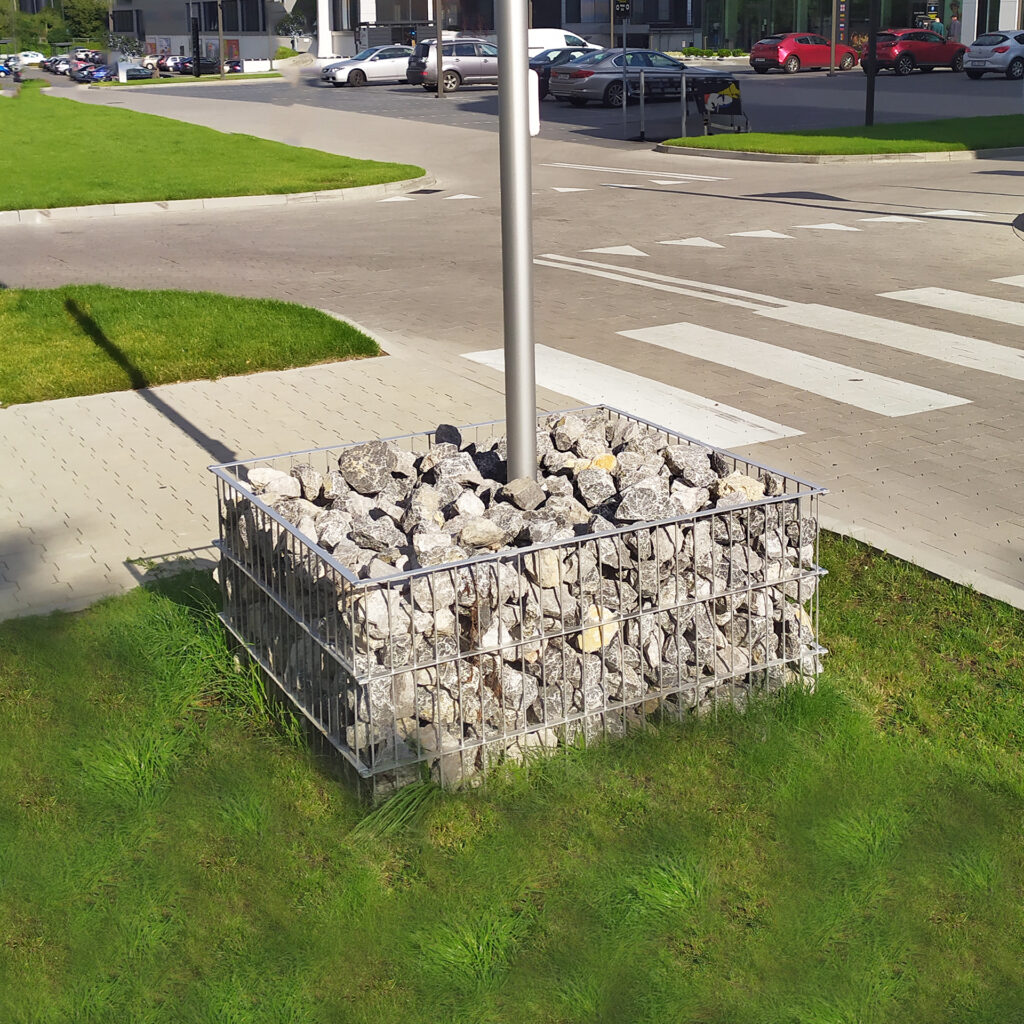 - Installation: Requires assembling the gabion, attaching the flagpole base and filling it with rocks.