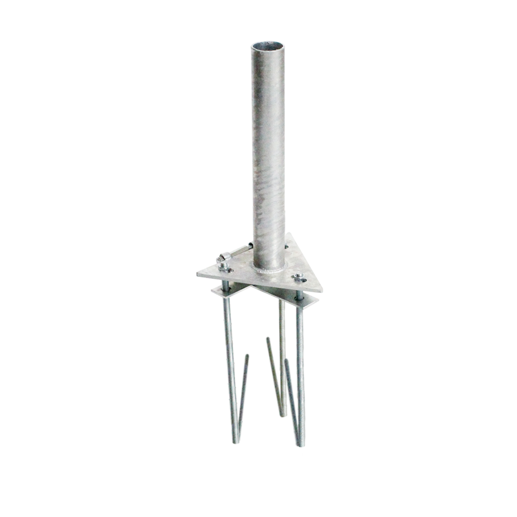 | Concrete Slab Base | Up to 8m poles | Portable, galvanized profiles, concrete slabs (50cm x 50cm – not included) | Assembled base: 115cm x 115cm x 25cm |